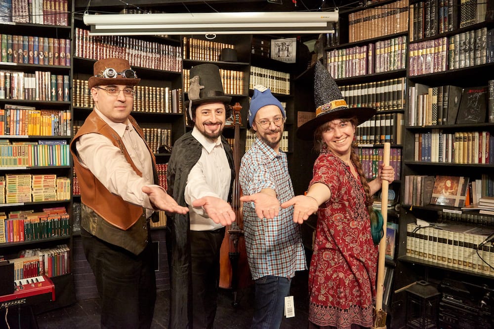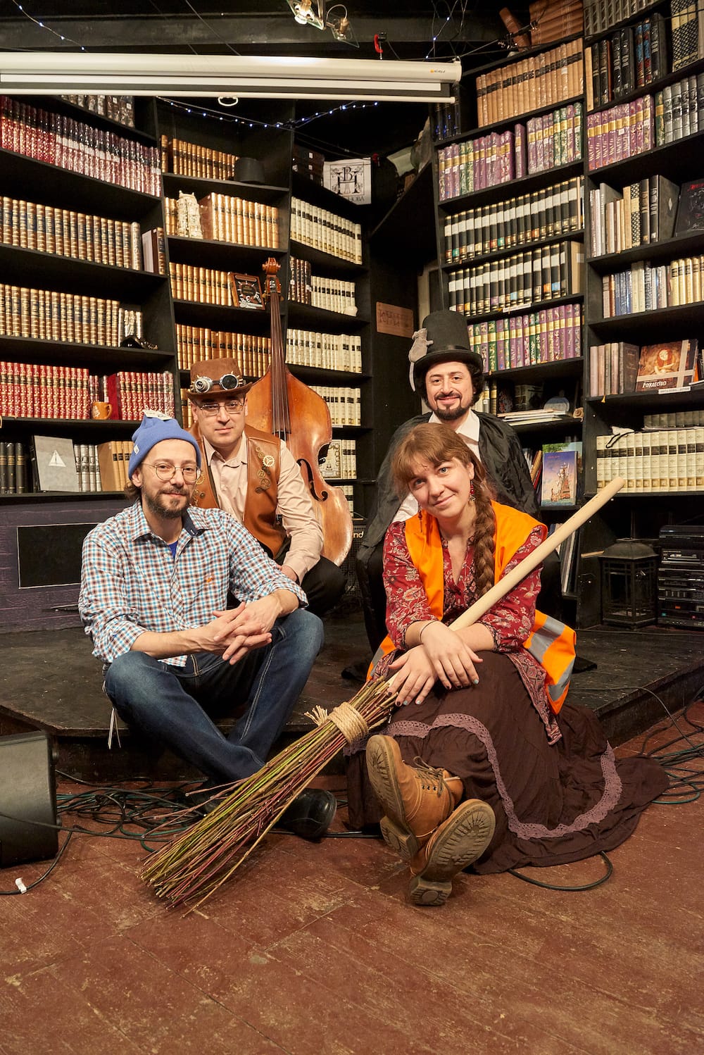 Исполняют музыканты и актёры: Мария Гескина (аккордеон),Михаил Альтшуллер (контрабас), Павел Крикунов (клавишные),Игорь Белый (гитара).