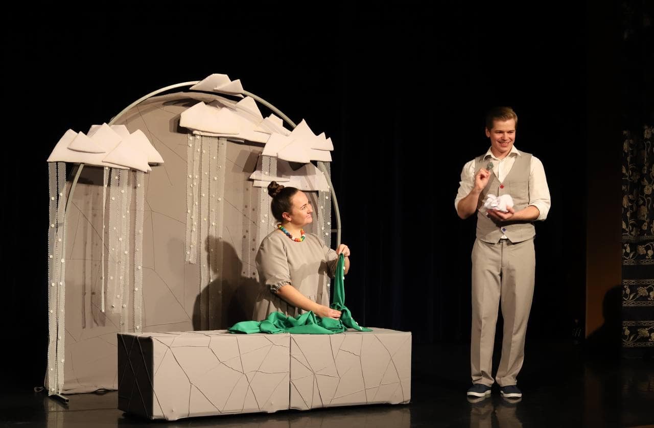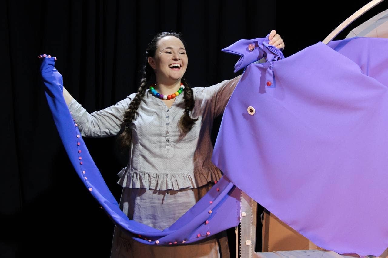 Вся постановка завязана на причудливом оформлении тканей и воображении. На наших глазах обычная материя превращается в забавных животных. Так, например, красная черепаха оказывается не такой уж медлительной, зеленый крокодил очень даже обаятельным, несмотря на свою прожорливость, а фиолетовый слон уж точно не оставит вас равнодушным и пошлет вам свой воздушный поцелуй. Встречаясь со своими друзьями, хамелеон меняет цвет, а на небе появляется радуга, ведь дружба творит чудеса.
