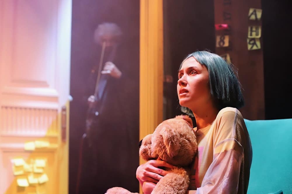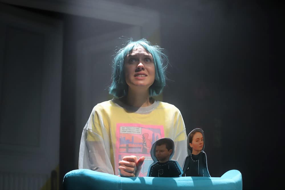 Спектакль по пьесе Екатерины Севериной «Родители напрокат» предполагает сочетание кукольного театра с пластическим и «живой» импровизации музыканта, который присутствует на сцене и включен в действие. Он не только озвучивает действие на сцене, но и является отдельным персонажем.