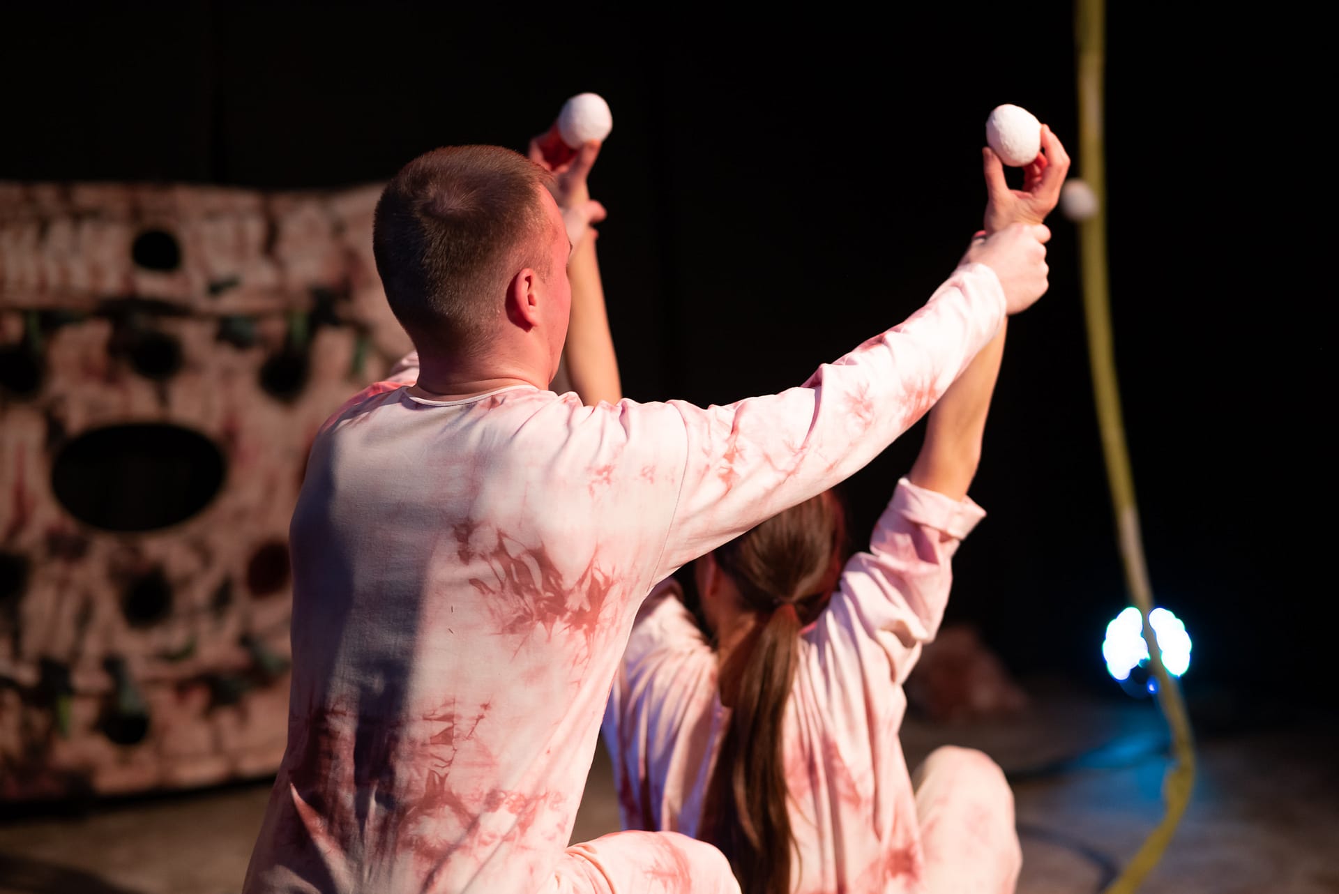 В спектакле заняты: Ася Галимзянова, Семен Мруз, Михаил Шеломецев/Ксения Османова.