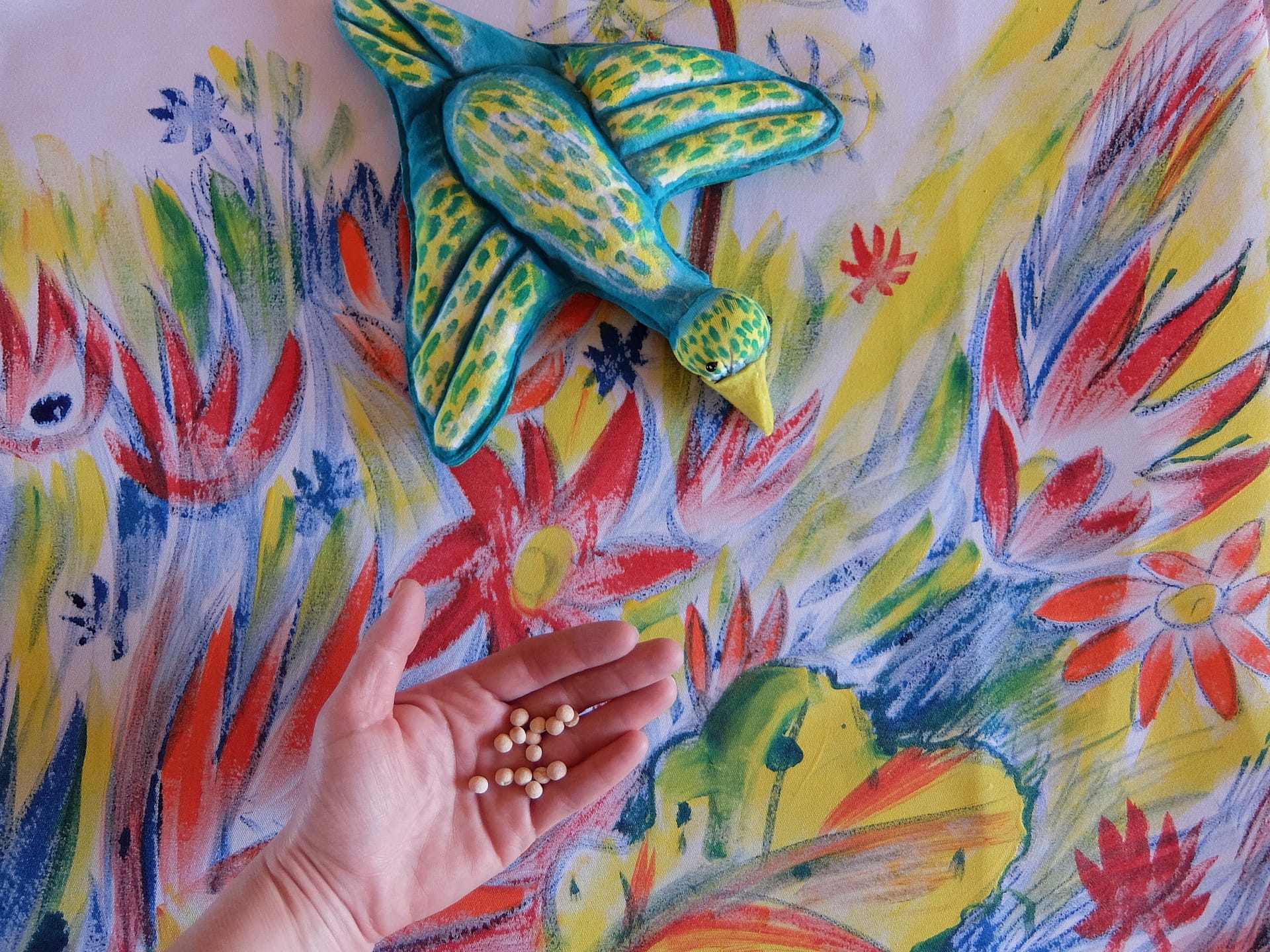 Ура! В Театр на ладошке пришла Весна! Прямо к нам в театр издалека прилетели птицы и высиживают птенцов. Зима, конечно, не торопится уходить, поэтому везде сверкают и капают настоящие сосульки. Они звенят, птицы поют, и получается настоящая весенняя музыка. Мы рисуем большой весенний пейзаж вместе со зрителями. А вот и первая радуга появилась. Ура, Весна в Первом театре!